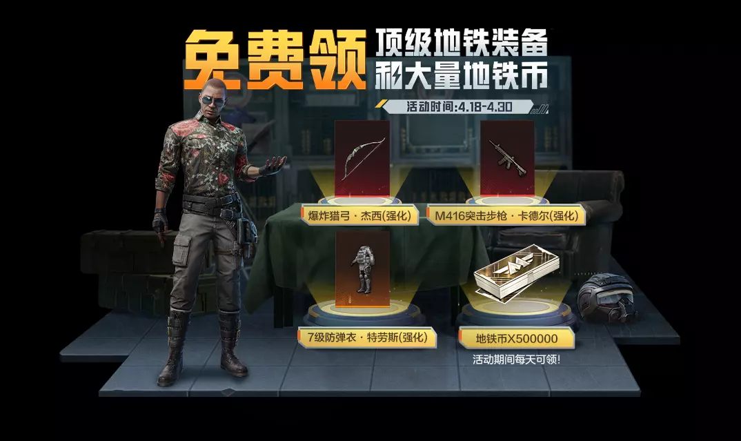 4月18日21点-4月30日,玩家每天通过完成任务和地铁对局拾取可获得4个地铁卡包,每个卡包可获得2张普通boss卡。