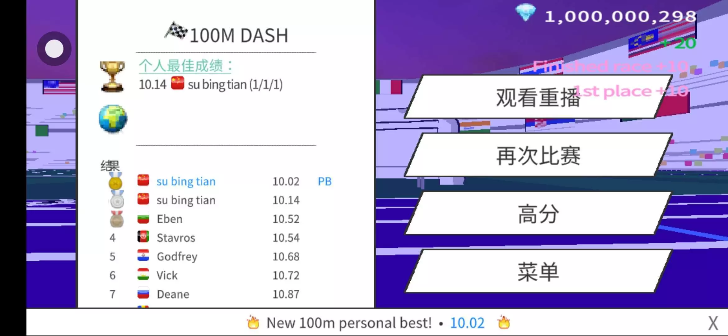 差点破十秒,求打压,求超越