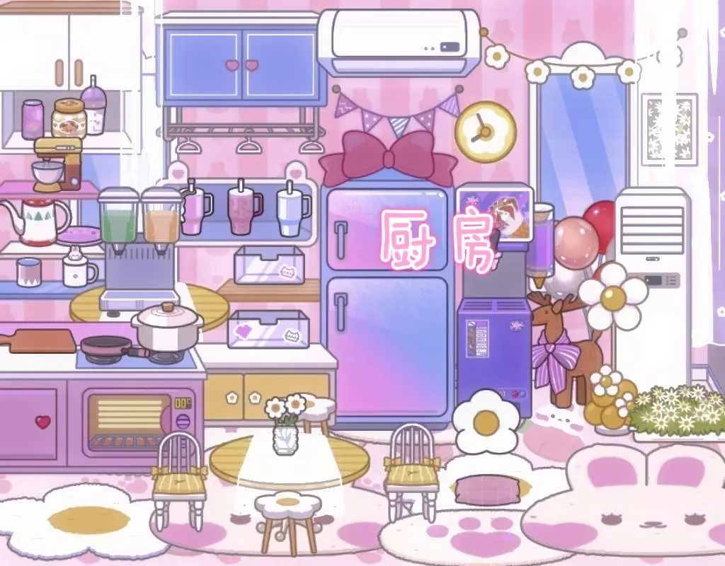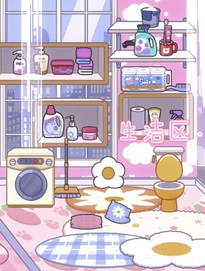这💖些房间呈现出甜美可爱风💝以,粉色系为主色调🎂,搭配大量萌趣元素🌷,营造出温馨、🎀浪漫且充满少女😝心的氛围。3. 生活功能区