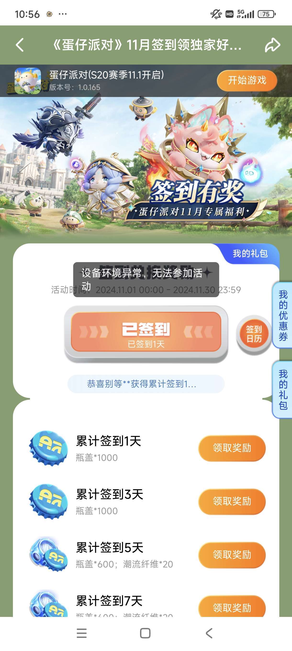我想问一下,领取奖励显示设备环境异常怎么办,手机重启、弄了一下网络也没用,在线等,挺急的🥲
