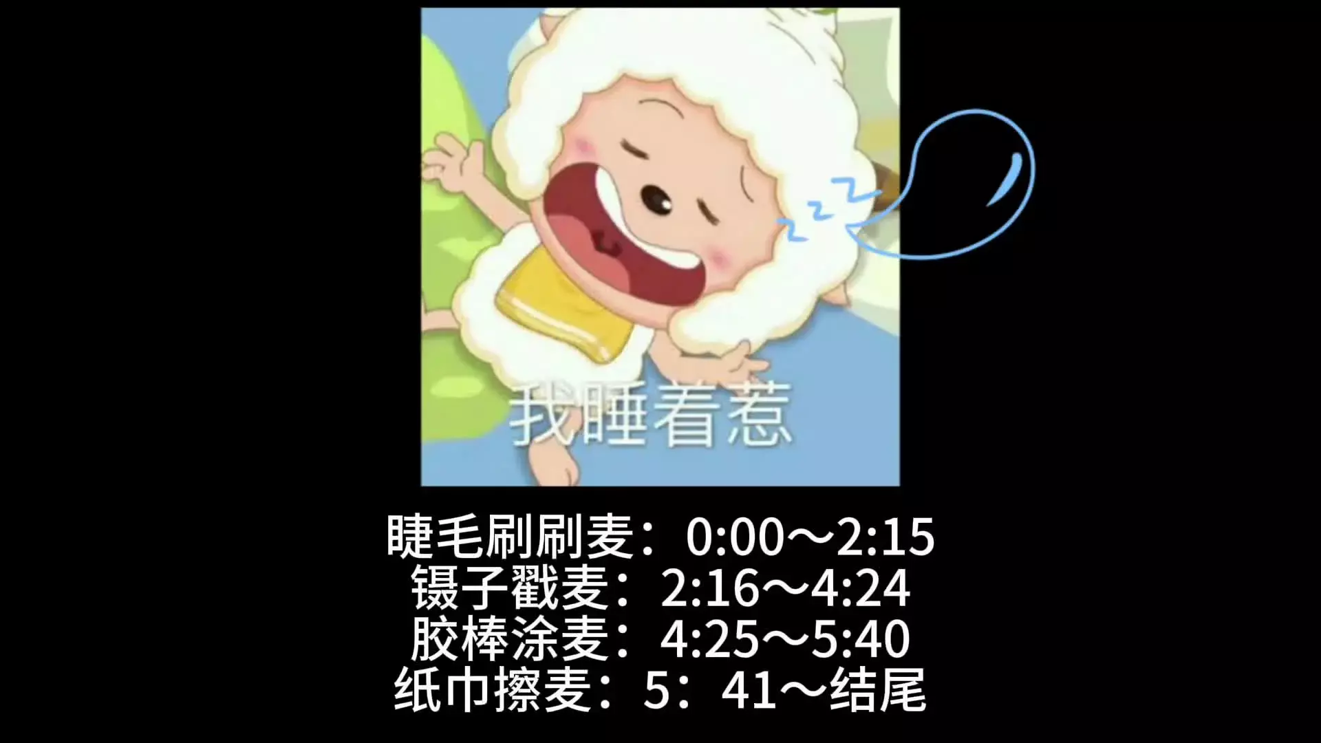 #助眠 #新手助眠 #ASMR 本期为:睫毛刷刷麦➕镊子戳麦➕胶棒涂麦➕纸巾擦麦,按需拖动进度条哦~(依旧是懒羊羊陪你入眠😴💤)