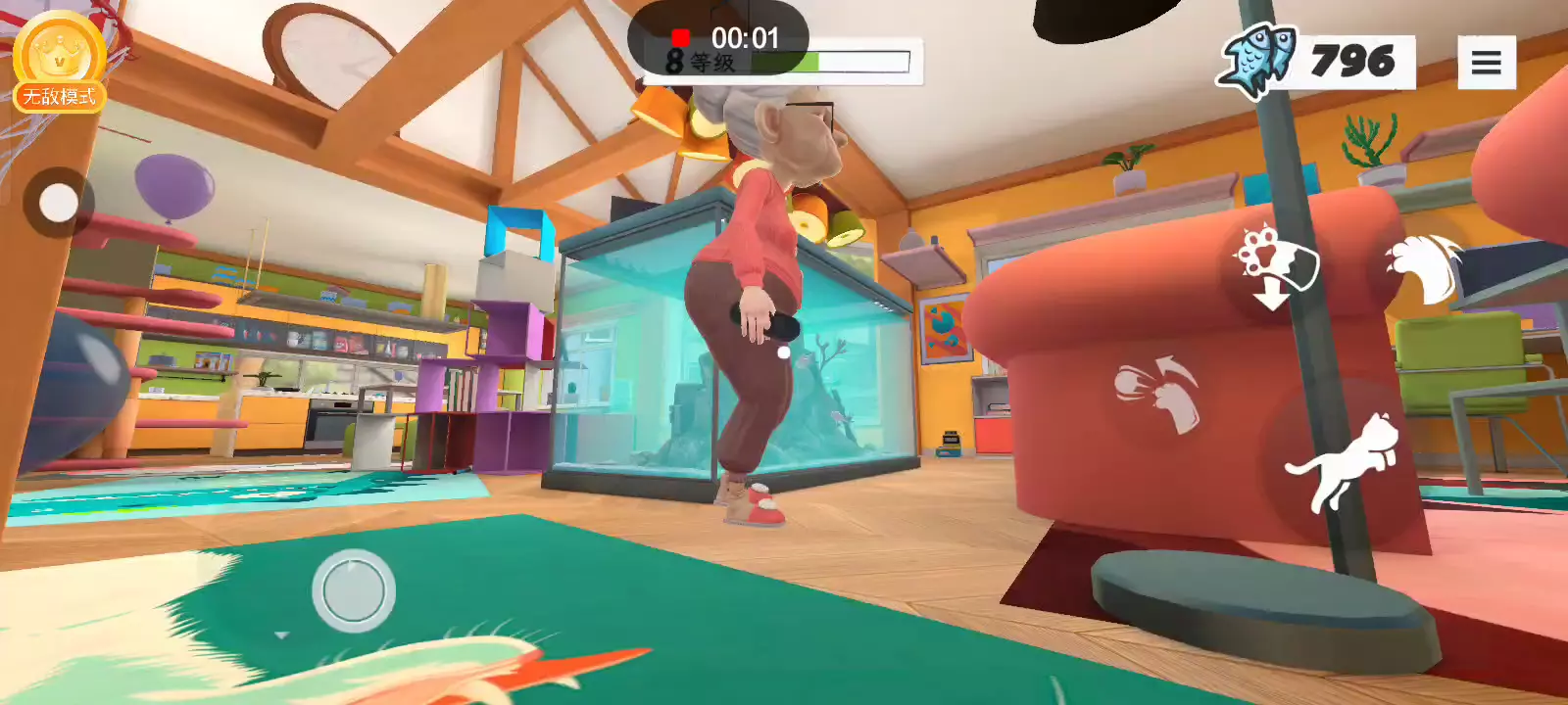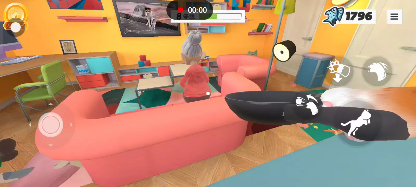 在这个身临其境的猫模拟器中成为终极猫科动物麻烦制造者,您的任务是在为人类建造的世界中制造混乱!从打翻无价的花瓶到抓起家具、偷食物和潜入禁区,《奶奶的贴心小猫》让你体验淘气小猫的生活。 凭借其滑稽的滑稽动作和有趣的游戏玩法,《奶奶的贴心小猫》捕捉了猫科动物自由的精髓,让你探索、玩耍和造成严重破坏,同时让你的人类保持警惕。在他们受够之前,你能在奶奶的房子里制造多少混乱?