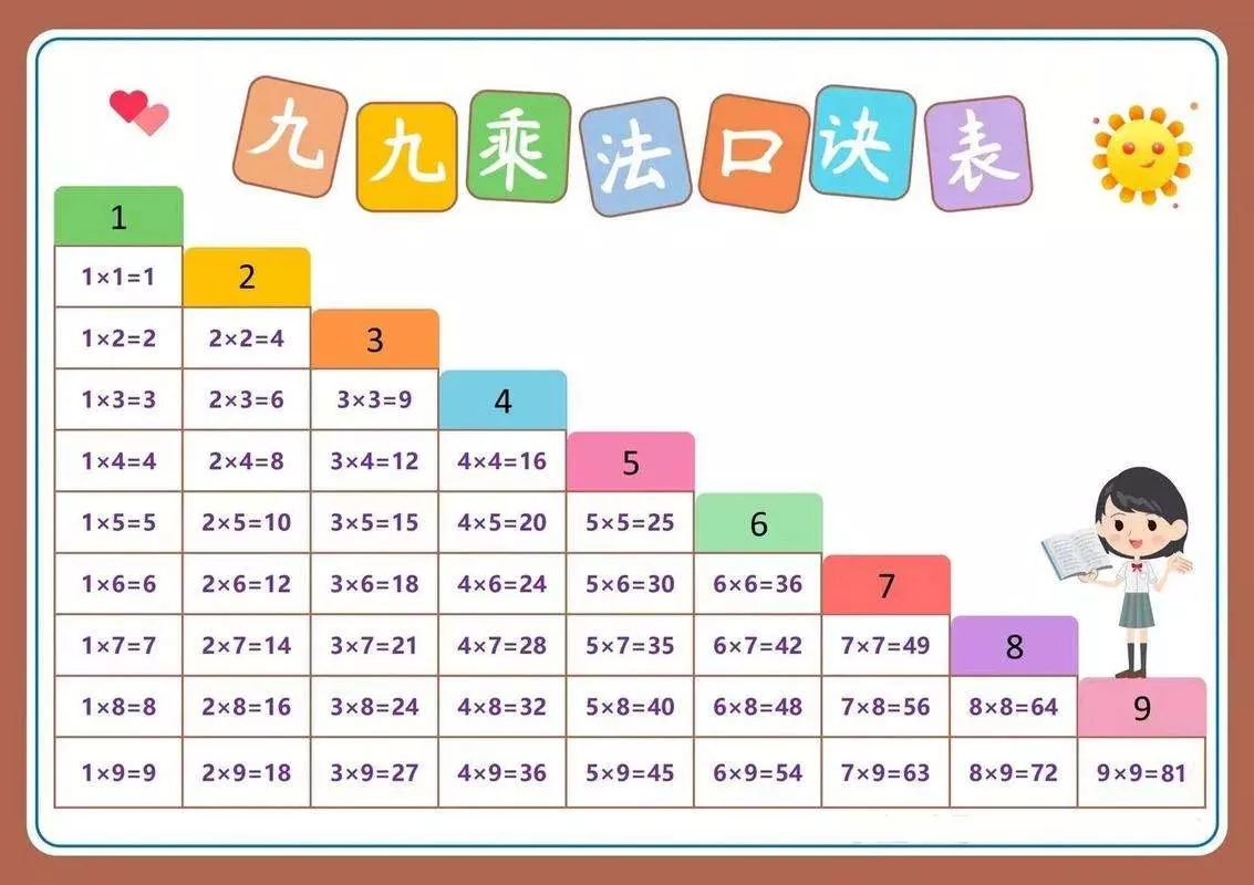 九九乘法口诀表: