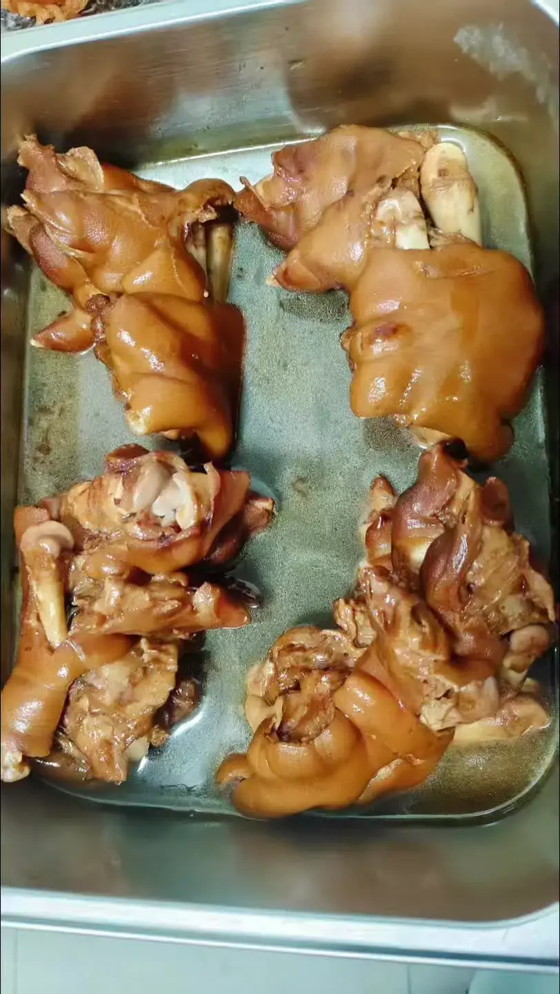 这是一款自制的黄笋卤猪蹄,卤制好的黄笋和猪蹄色泽诱人,搭配卤饵丝食用,是一道风味十足的自制卤味美食。