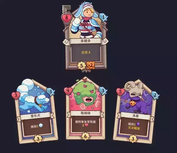 每当我们出门战斗时,都需要从三位部族英雄中(部族需解锁),不同的部族意味着风格完全不同的卡组。