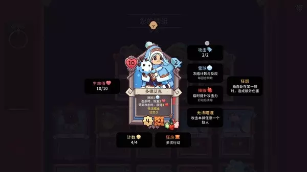 这还不算强力,如果你又适时的获得了反击挂饰,也将其装到首领身上时,会发现每受到一次攻击,首领也会同样的反击4下,这就非常超模了,理论上一回合攻击次数能到达6*4+4等于夸张的28下,看着己方角色不断攻击而敌人毫无还手之力,rogue游戏的爽快度尽显于此。