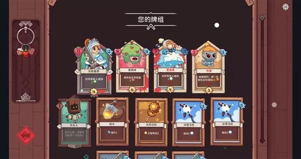 然后游戏中的作战单位都有计数的限制,也就是通俗的cd制,只有计数归零才能开始行动和触发对应的主动效果,被动效果则是全局生效。针对计数系统则有加快计数的太阳法杖、太阳挂饰、暂停计数的冰雪法杖、雪球挂饰等卡牌,再进一步延伸出对有雪球debuff敌人增伤的输出卡牌等等。