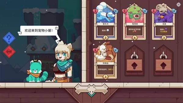 宠物方面,除了一开始就伴随玩家的雪乐犬,其余宠物需要达成一系列条件才能逐步解锁,比如召回伙伴、击杀带有魔化debuff的敌人、购买打折商品等。