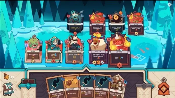 不同于大家熟悉的《杀戮尖塔》,《雪居之地》的战斗模式是多对多的,玩家的阵容将由首领、宠物和伙伴共同组成,直观一点来说阵容方面更接近《炉石传说》。