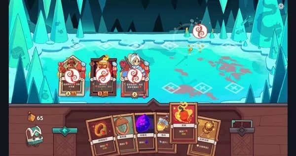诅咒宝藏:这个场景中会遇到3张卡牌,点击卡牌后不耗费资源直接获得该卡牌,作为代价会一并获得背后隐藏的诅咒牌,诅咒牌为一系列负面效果的卡牌,多数为被动生效,比如抽到雪崩就会给己方所有单位加上一层雪球debuff,还有会给己方增加魔化debuff的诅咒牌。因此这个场景看似美好,但也不能盲目拿牌,很可能会导致卡组被负面卡牌污染,从而作战失利。