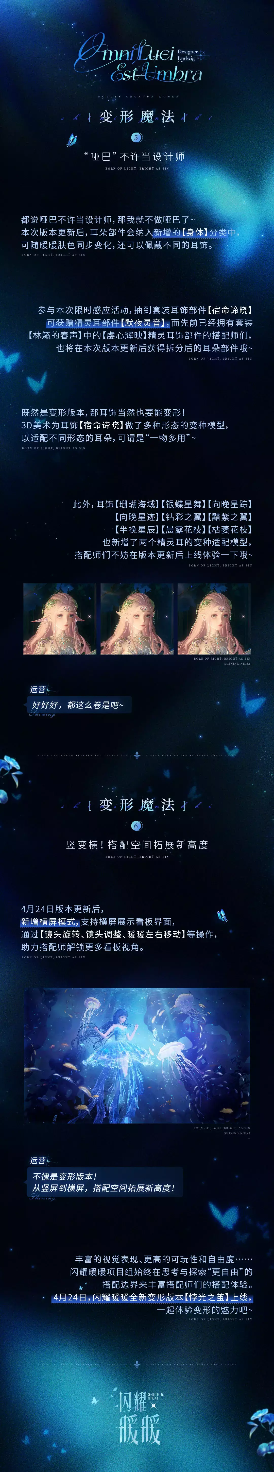 在闪耀暖暖4月24日即将上线的全新变形版本【悖光之茧】中,有各式各样拥有特殊功能的服饰。
