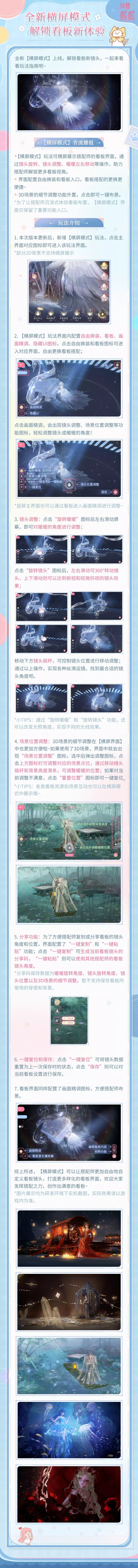 为了让搭配师更加自由地自定义看板镜头,打造更多样化的看板界面,4月24日更新后,全新【横屏模式】玩法上线,快发挥你的搭配之力,创作出独一无二的看板吧~⭐【省流播报】