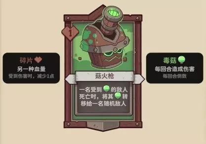 【菇火枪】1碎片,一名敌人死亡时,将毒菇转移给随机敌人。