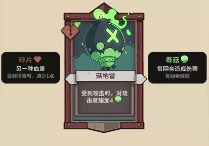【菇地雷】1碎片,受到攻击时,对攻击者施加4毒菇