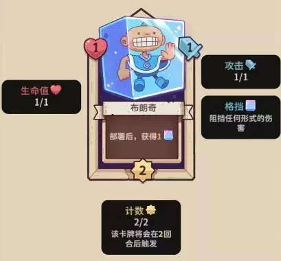 【布朗奇】1血,2行动计数,1攻击力,部署时,获得1格挡