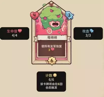 【莓绵绵】4血,6行动计数,3攻击力,行动时所有友军恢复3HP