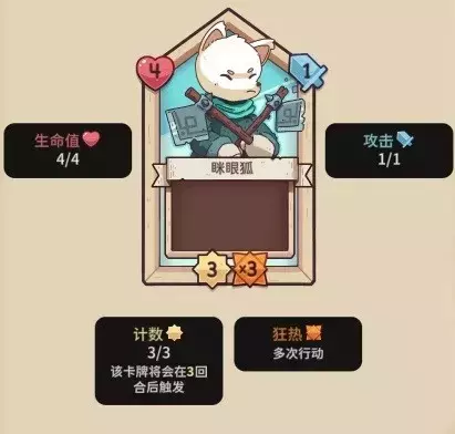 【眯眼狐】4血,3行动计数,1攻击力,3狂热