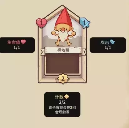 【裸地精】1血,2行动计数,1攻击力