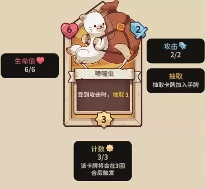 【喷嚏虫】6血,3行动计数,2攻击力,受到攻击抽1。