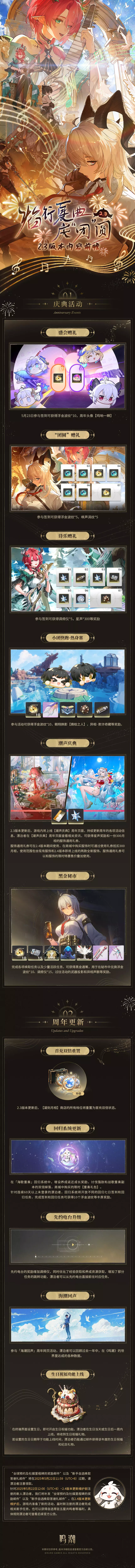 《鸣潮》版本前瞻 | 2.3版本「焰行夏曲庆“团”圆」4月29日即将更新,一周年潮声庆典同步开启。