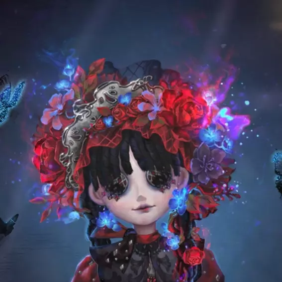 头顶的花朵鲜艳而绮丽,一团团簇拥着她,小巧的发辫亦缠绕着花藤,一前一后搭在肩头,引得那神秘的蝴蝶在她身旁翩然而舞。