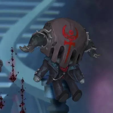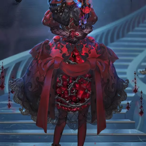 怀中的玩偶穿着优雅的西装,却被一个神秘的头盔挡住了面庞,鲜红的符号与环绕的荆棘都散发着禁忌的气息。