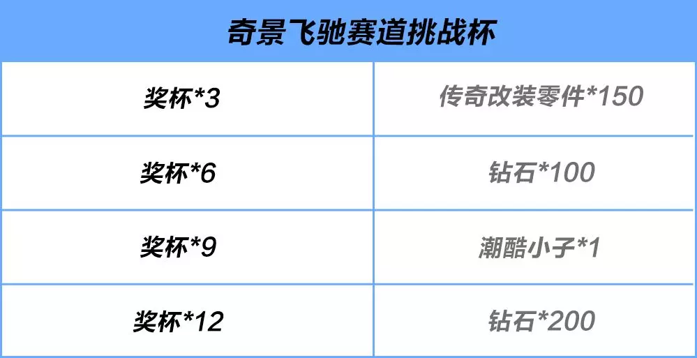 ▼奇景飞驰赛道挑战杯奖励详情如下▼