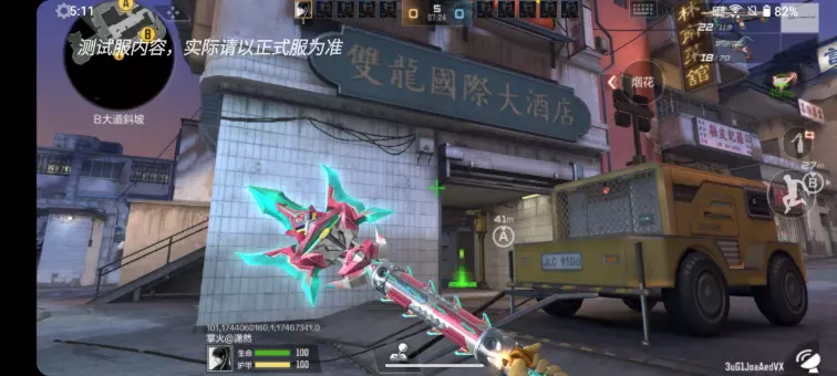 潜伏者B区进攻路线上的索道点位位于“双龙国际大酒店”招牌下方的入口处,在入口的边上还停着一辆黄色的小车。