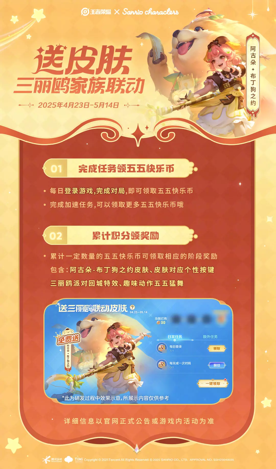 4月23日-5月14日,参与活动即可免费获取【阿古朵-布丁狗之约】【趣味动作-五五猛舞】!
