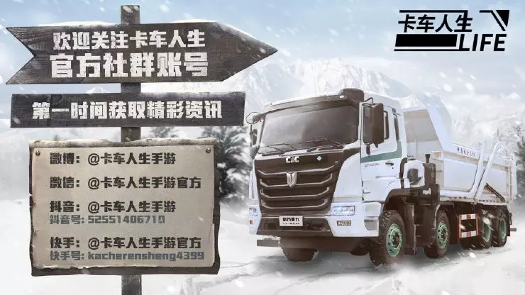 更多内容爆料敬请关注小卡的后续资讯,公众号独家关注礼包上新,关注官方公众号【卡车人生手游官方】,输入口令【卡友相聚】即可获得全新独家关注礼包!(已领取过的卡友无法重复领取)