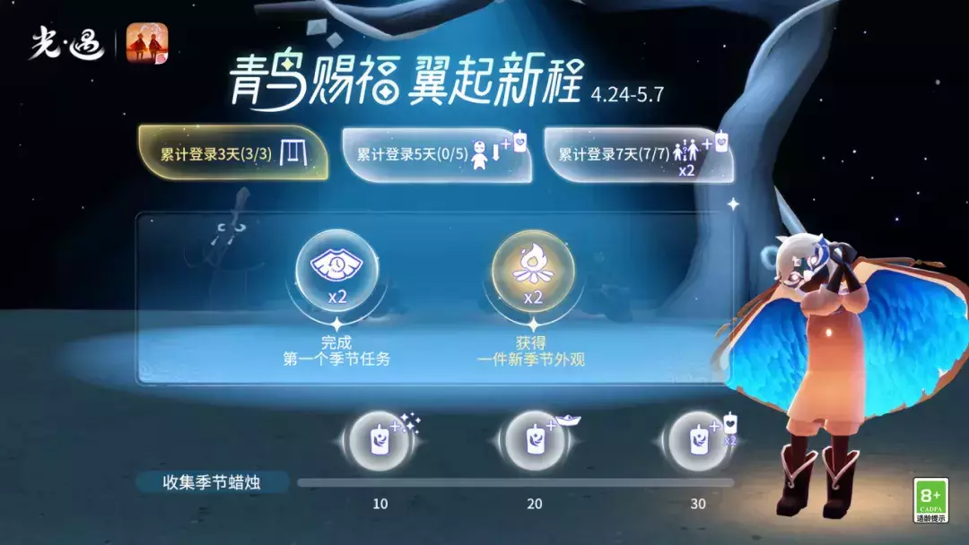 可对应获得季节蜡烛*1和璀璨之星*1