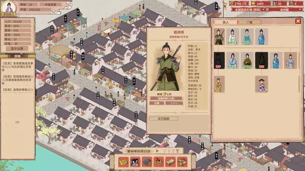 家族养成是游戏又一核心玩法。开局仅剩祖宅残垣与光杆族长,从代写讼状、街头短工等营生白手起家。合理规划仅有的资金,悉心经营农庄、商铺等产业。通过招募门客、雇佣伙计,充分发挥他们的天赋,为家族创造财富。同时,还要关注家族成员的身心健康、成长规划、婚丧嫁娶。培养好苗子,考取功名或从军征战,为世家的繁荣昌盛奠定基础。