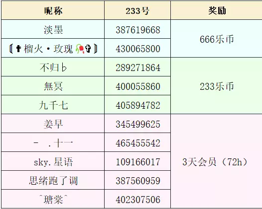随机抽取3位送出:乐币*233