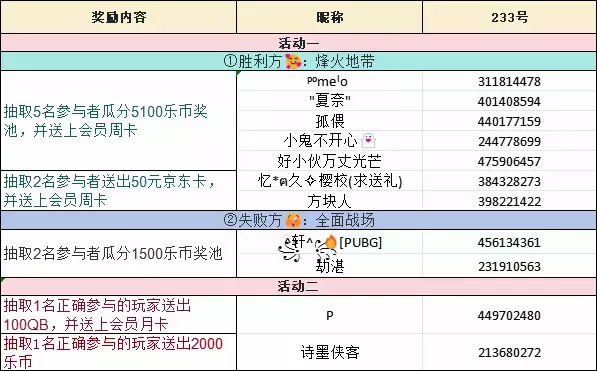 随机抽取2名正确参与的玩家送出2000乐币