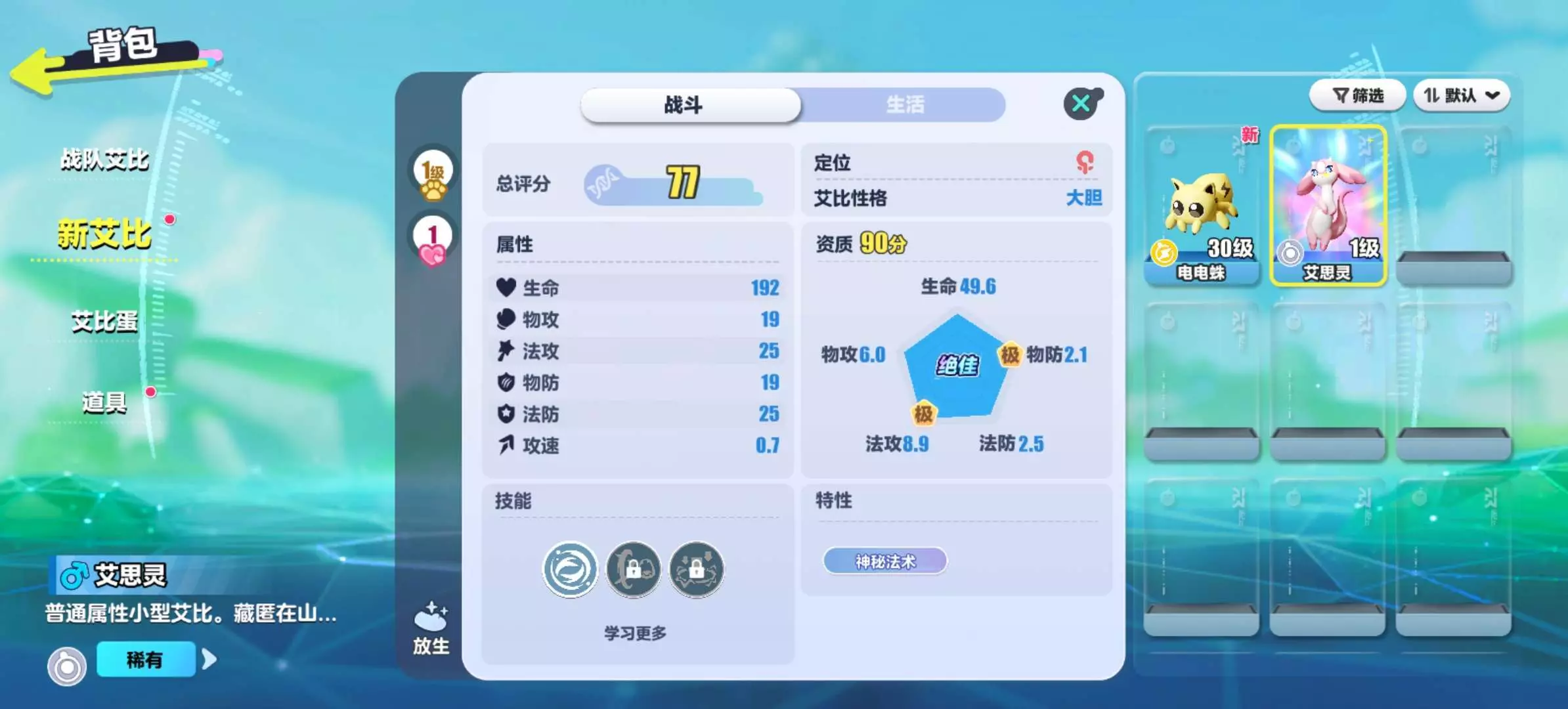 我之前抓电狸的时候90分也是彩色文字打底啊!抓到就是普普通通的文字,我以为是个资质不咋好的,点开才发现是刚好90的彩光。