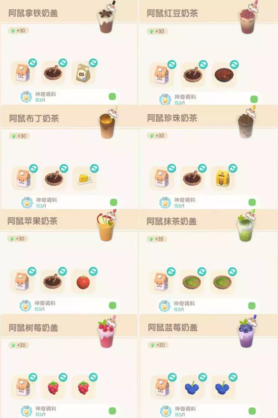 【心动小镇】奶茶鼠联动八杯奶茶食谱攻略