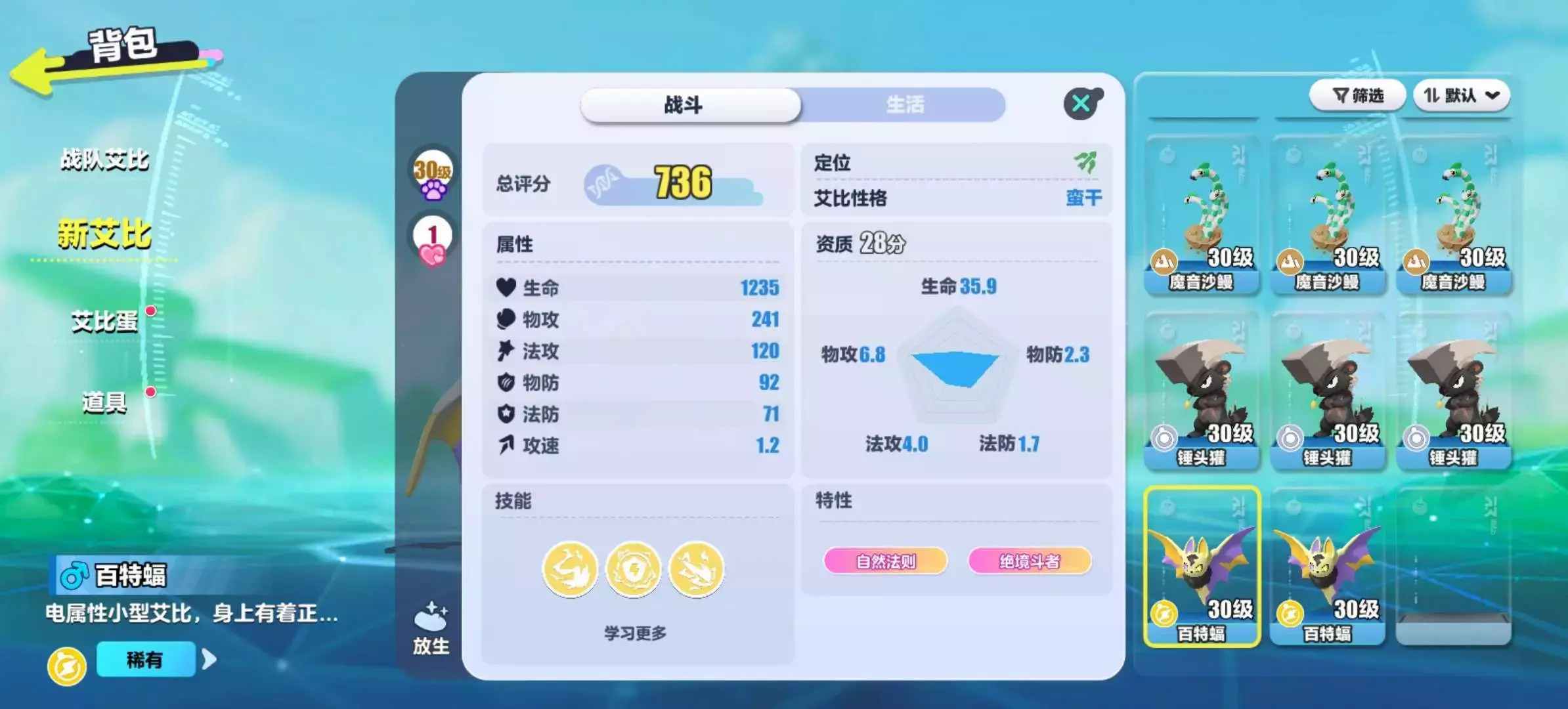 感觉我运气还是挺好,进图就有的异色牛,资质还不错;没刷一个图出了两只百特蝠,就是资质不太好!
