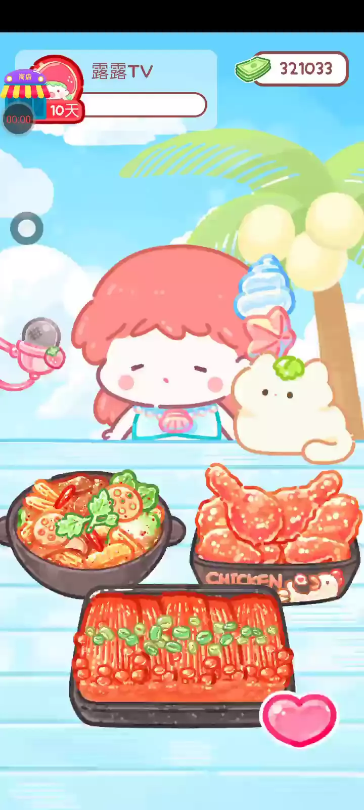 「你进行草莓糖葫芦吃播的话,我就赞助100元。」 「脆口的声音太迷人了(°θ°)」 由于客人都被最近新开的许多糖葫芦店家抢走,曾经号称糖葫芦达人的父母因此卧病在床。 继承父母店面的主角露露开始糖葫芦吃播来宣传店面。 直到成为真正的糖葫芦达人那一天! 「今天我也要开始糖葫芦直播罗!( •o• )」 [串材料] 只有新鲜的水果的话,很难以一名吃播实况主存活下来。还要有松饼、地球软糖、青阳辣椒!利用奇特的材料制作糖葫芦吧。 [裹糖衣] 将材料串满竹签的话,就放进锅子搅动吧。唯有利用达人的秘法,才能裹出又薄又脆的糖衣。 [即时吃播] 咔哒咔哒!今天的吃播也大成功。热烈的聊天内容看起来反应也不错。看来得利用完成观众任务得到的赞助金来买新材料了! 来,准备好了吧?现在就马上挑战成为糖葫芦达人吧!