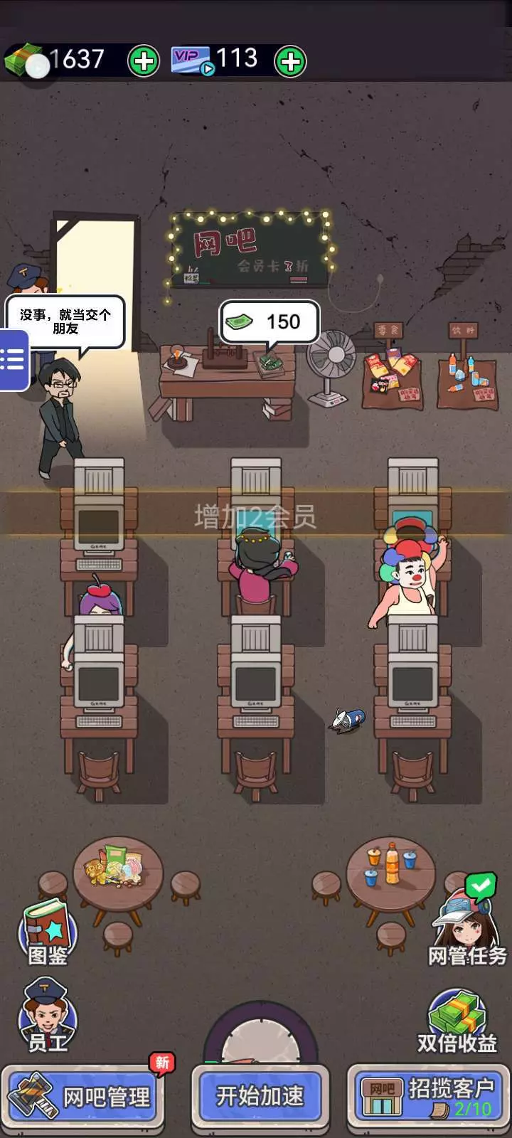 这游戏的赚钱速度是不是提升了?半小时左右,在六桌六个电脑的全都买下来了?以前为了这六桌六电脑肝了那么久,结果你告诉我半个小时左右就肝完了。