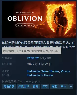 游戏目前Steam商店页面评价为“特别好评”,好评率82%。