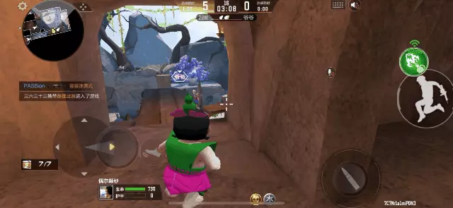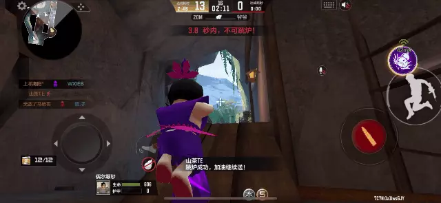 除此之外,也可以自行跳锅,在清理完高台后再次开启千里眼技能,观察被透视到的敌人位置,确认没有威胁后,便可像高台跳水一样,从高空一跃而下,完美入锅。
