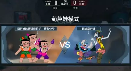 攻守双方分别扮演葫芦娃进攻,进攻路线分为左路,中路以及右路,葫芦娃使用各种技能扫清进攻路线上的敌人,成功跳进丹炉即为成功一次,在规定时间内完成16人跳丹炉,且用时越短即为胜利。