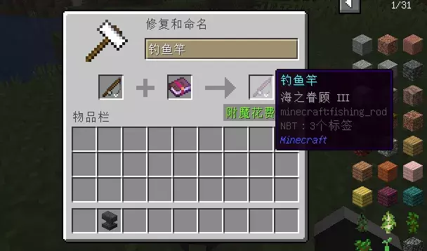 钓鱼竿可以附魔"海之眷顾"