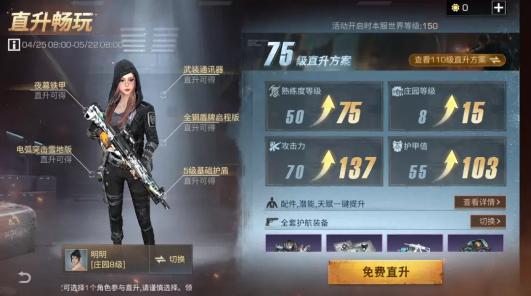 使用直升畅玩模板后,联盟会协助幸存者自动使用库存材料(不足的部分由系统补齐,已经超出畅玩模板的养成部分不会降级)——根据幸存者们直升前的养成情况,直升后还可获得额外材料奖励。