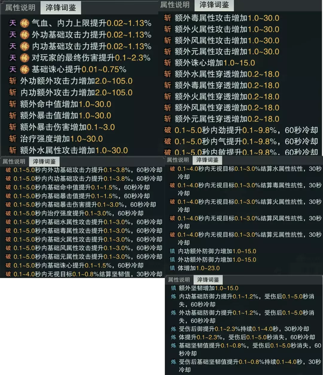 同时淬锋系统的说明中还补充了淬锋词鉴和精粹词鉴的内容,少侠可以在词鉴中查询所有的淬锋属性。