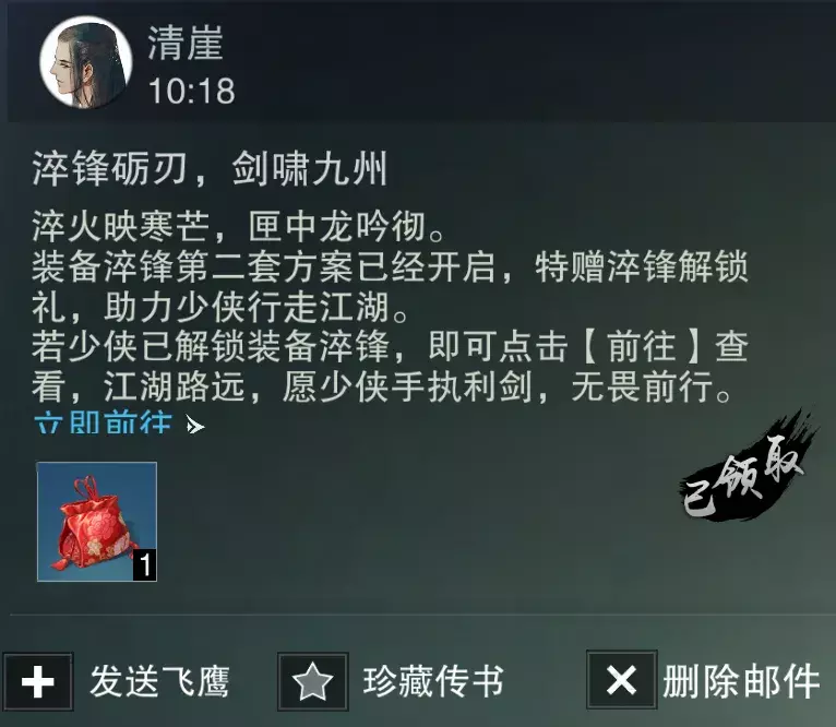 160级以上的少侠都可以开启!领取清崖大哥的淬锋装备小礼物后,就可以开启你的第二套淬锋啦!