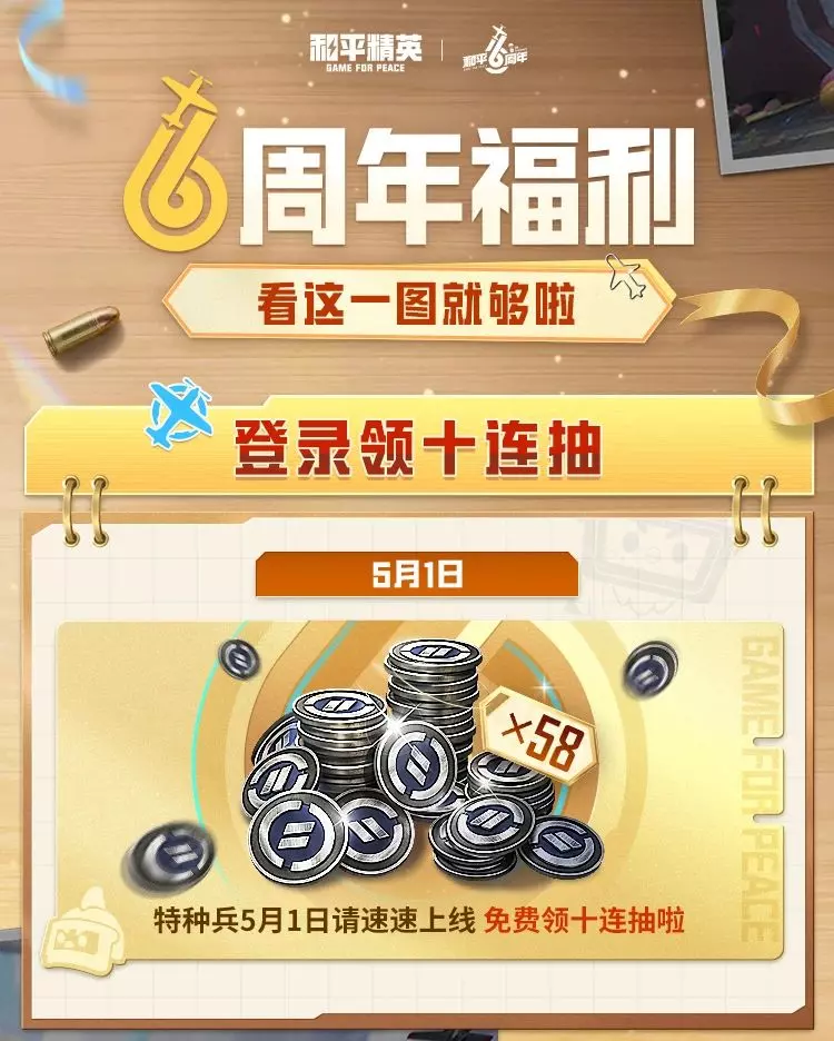 和平6周年福利大放送,没有你领不到的,只有你想不到的!快快行动起来~