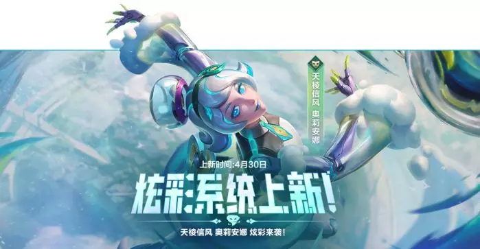 天棱信风 奥莉安娜将于4月30日加入炫彩系统,为峡谷再添灵动色彩~喜欢的召唤师届时可前往拿下!