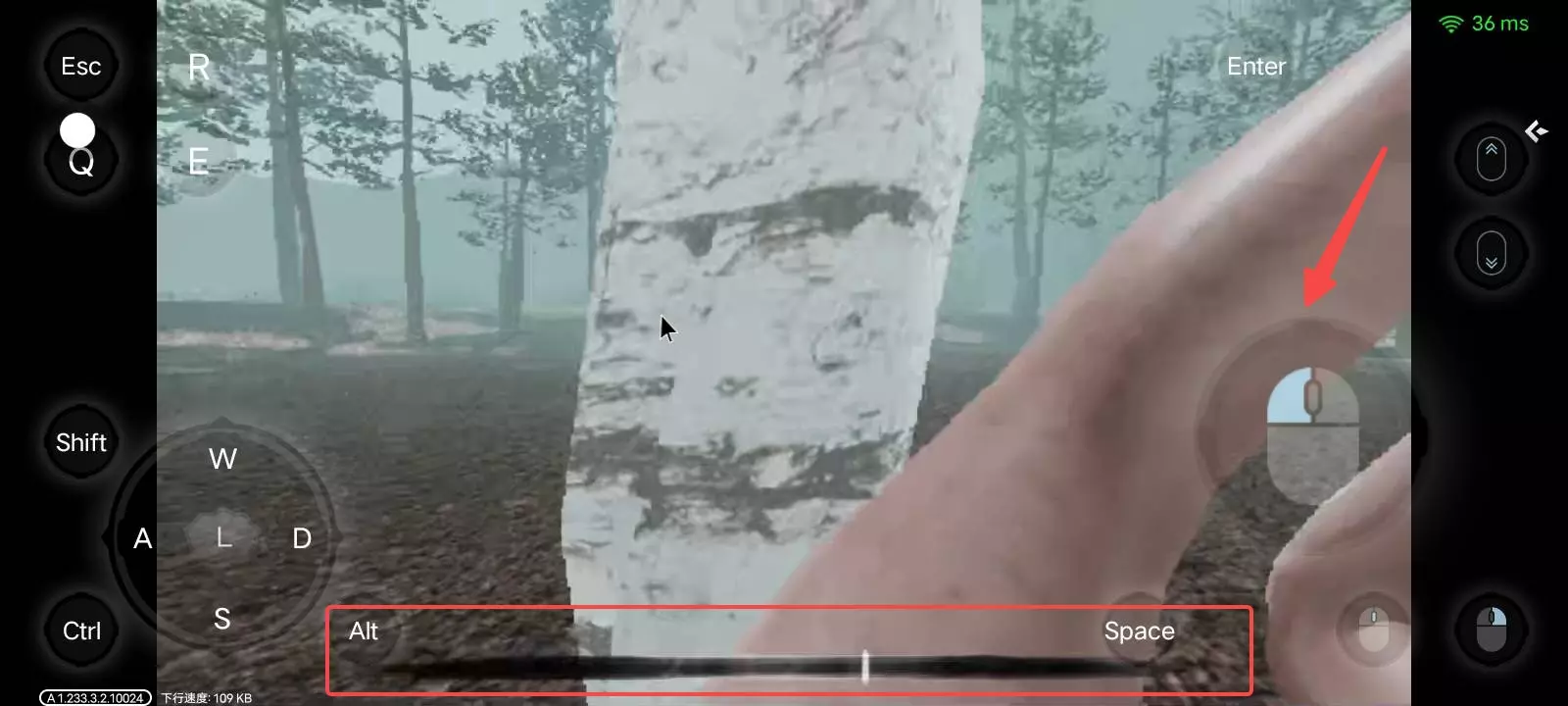 4.走到血皮树前点击鼠标左键即可开始砍树,如下图所示,注意需将力度控制在正下方的蓄力条