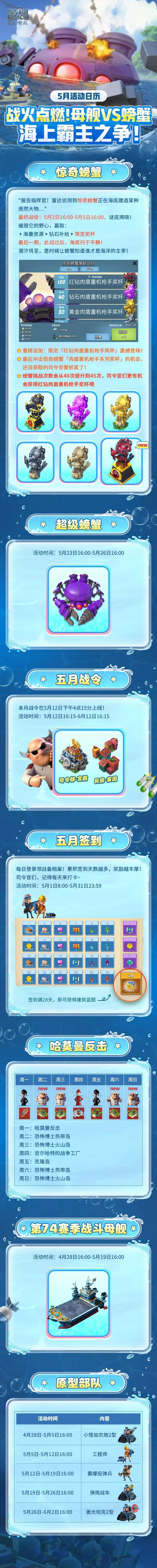 5月活动日历 | 战火点燃!母舰VS螃蟹,海上霸主之争!